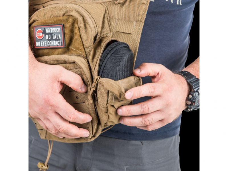 Taška EDC cez rameno / batoh je kompaktná, univerzálna batožina na každodenné nosenie. Taška má priestranný úložný priestor na väčšie predmety a niekoľko menších vreciek vo vnútornom organizéri. Na bočnej strane tašky nájdete malé vrecko na základné veci a univerzálny držiak na fľašu. Laserom vyrezávaná väzba MOLLE / PALS pokrýva prednú časť na pripevnenie ďalšieho voliteľného vybavenia. Taška EDC má aj malé skryté vrecko vhodné na nosenie služobnej zbrane.