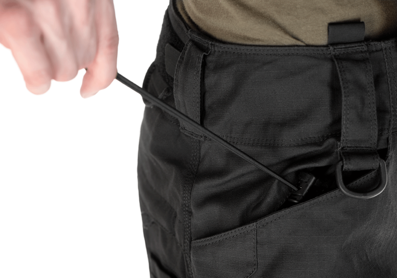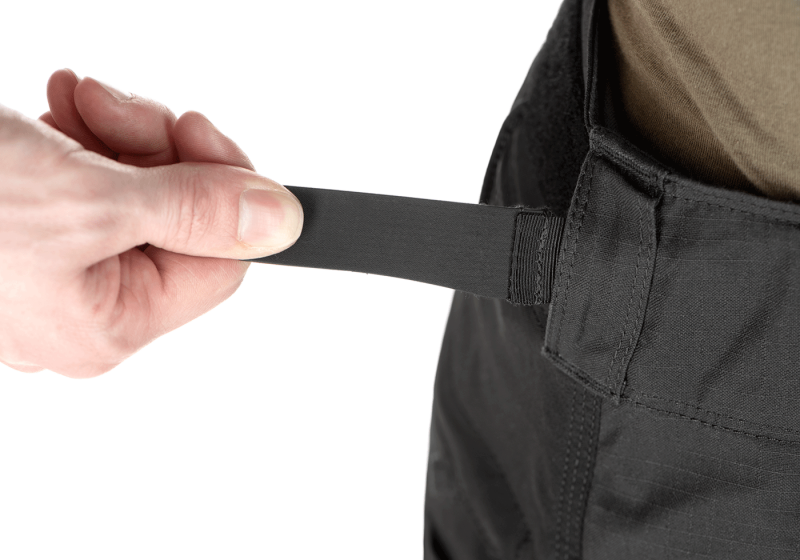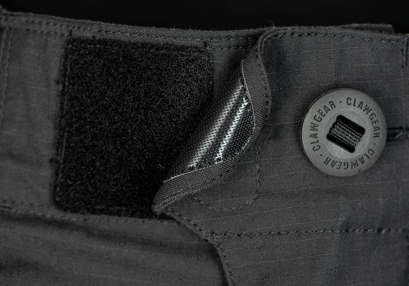 • Hlavným zapínaním nohavíc je kvalitný a odolný zips YKK uprostred a 1 gombík na vrchu. Po zapnutí sa gombík zaistí dodatočnou chlopňou na suchý zips. Nohavice sú v páse vybavené pevnými a dostatočne širokými prievlakmi, a preto sa do nich zmestí aj široký opasok. Pás je ľahko nastaviteľný vďaka elastickým pásikom na suchý zips umiestneným na chrbte, ktoré poskytujú ešte väčšie pohodlie a prispôsobujú sa pohybom tela.