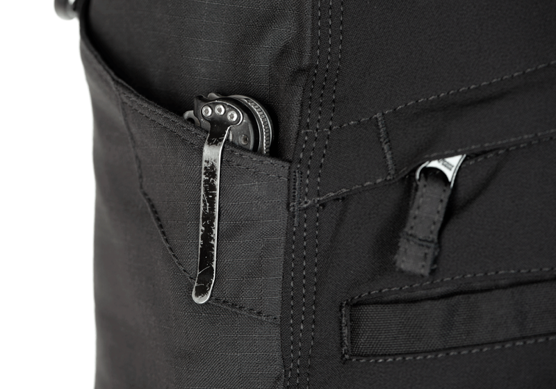 • 2 hlboké vrecká s horným otvoreným bočným vstupom (na ruky, kľúče, vreckovku, zatvárací nôž atď.). Obe vrecká sú na vonkajších okrajoch podšité druhou vrstvou látky pre väčšiu odolnosť pri pripájaní spony na nôž alebo iného vybavenia. Na prednej strane nohavíc, na pútkach na opasok, sú 2 "D" krúžky (1 na každej strane) na zavesenie kľúčov a drobných predmetov. Nohavice sú vybavené 2 úložnými stehennými vreckami s horným vstupom na zips prekrytým klopou. Vo vnútri stehenných vreciek je vrecko na časopisy. Úložný priestor nohavíc bol rozšírený aj o priehradky s horným otvoreným vstupom, ktoré sú primárne určené na uloženie zásobníka s možnosťou veľmi rýchleho prístupu. Vrecko je dostatočne hlboké, takže sa nemusíte obávať vypadnutia zásobníka ani pri rýchlejšom pohybe. Toto tunelové vrecko možno použiť aj na uloženie napríklad klobúka, baretu atď.