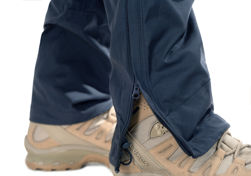 - Kalhoty majú trojito prešité hlavné švy pre väčšiu odolnosť a sú vybavené vysokokvalitnými a odolnými zipsami YKK, pričom na stehenných vreckách sú umiestnené ťaháčiky s látkovým úchytom pre jednoduché otváranie. Nohavice majú nastaviteľné konce nohavíc alebo bočné vertikálne zapínanie na zips, ktoré umožňuje tesné obopnutie topánok, ale aj voľnejší strih. V prednej časti je tiež háčik na pripevnenie k šnúrkam na topánky, ktorý zabraňuje nechcenému vyťahovaniu nôh.