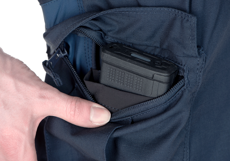 - 2 hlboké vrecká s horným otvoreným bočným vstupom (na ruky, kľúče, vreckovku, zatvárací nôž atď.). Obe vrecká sú na vonkajších okrajoch podšité druhou vrstvou látky pre väčšiu odolnosť pri pripájaní spony na nôž alebo iného vybavenia. Na prednej strane nohavíc, na pútkach na opasok, sú 2 "D" krúžky (1 na každej strane) na zavesenie kľúčov a drobných predmetov. Nohavice sú vybavené 2 úložnými stehennými vreckami s horným vstupom na zips prekrytým klopou. Vo vnútri stehenných vreciek je vrecko na časopisy. Úložný priestor nohavíc bol rozšírený aj o priehradky s horným otvoreným vstupom, ktoré sú určené predovšetkým na uloženie zásobníka s možnosťou veľmi rýchleho prístupu. Vrecko je dostatočne hlboké, takže sa nemusíte obávať vypadnutia zásobníka ani pri rýchlejšom pohybe. Toto tunelové vrecko možno použiť aj na uloženie napríklad klobúka, baretky atď.