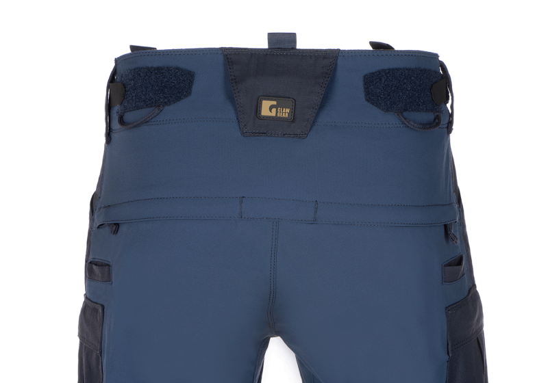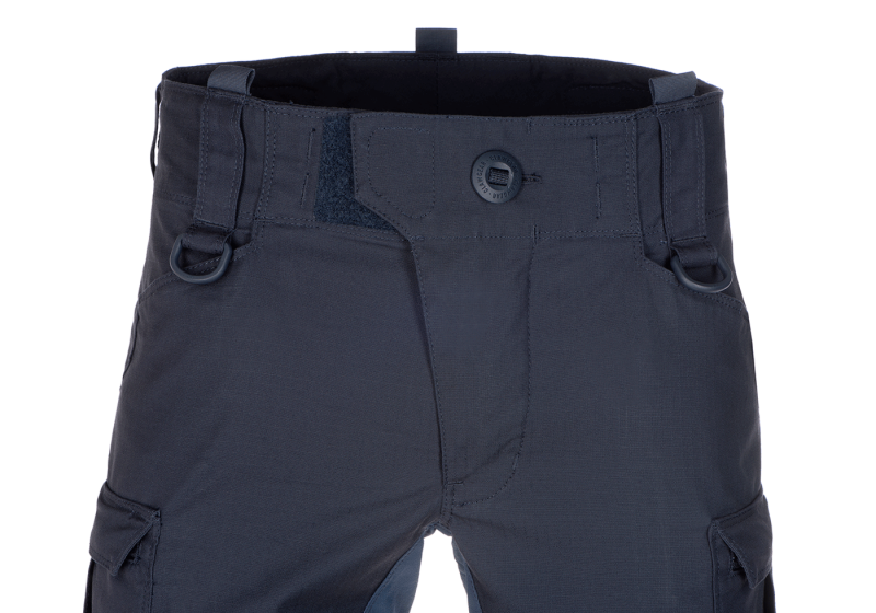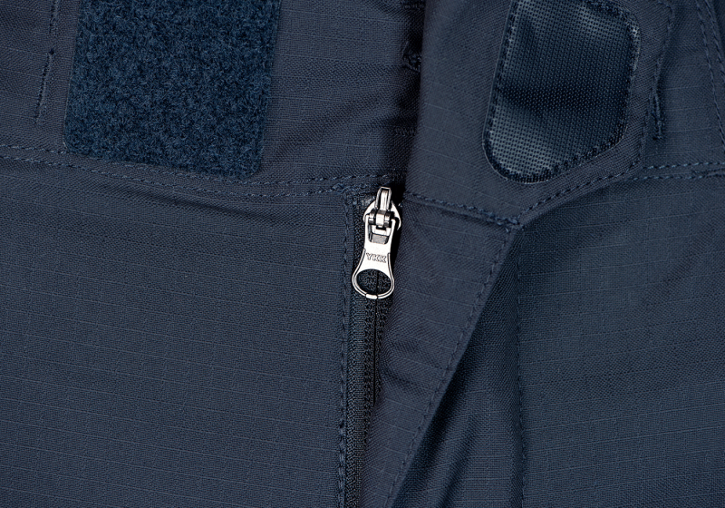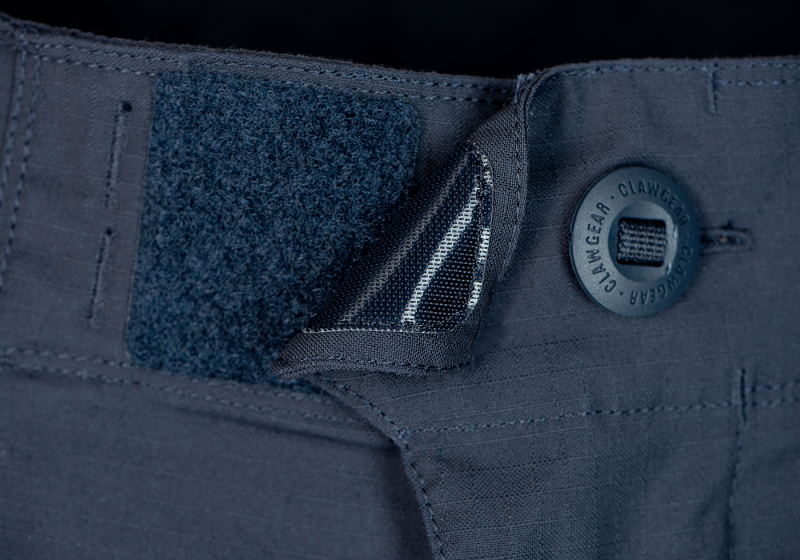 - Hlavné zapínanie nohavíc je na kvalitný a odolný zips YKK uprostred a 1 gombík na vrchu. Po zapnutí sa gombík zaistí dodatočnou chlopňou na suchý zips. Nohavice sú v páse vybavené pevnými a dostatočne širokými prievlakmi, a preto sa do nich zmestí aj široký opasok. Pás je ľahko nastaviteľný vďaka elastickým pásikom na suchý zips umiestneným na chrbte, ktoré poskytujú ešte väčšie pohodlie a prispôsobujú sa pohybom tela.