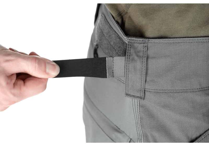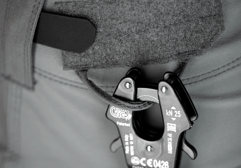 • Hlavným zapínaním nohavíc je kvalitný a odolný zips YKK uprostred a 1 gombík na vrchu. Po zapnutí sa gombík zaistí dodatočnou chlopňou na suchý zips. Nohavice sú v páse vybavené pevnými a dostatočne širokými prievlakmi, a preto sa do nich zmestí aj široký opasok. Pás je ľahko nastaviteľný vďaka elastickým pásikom na suchý zips umiestneným na chrbte, ktoré poskytujú ešte väčšie pohodlie a prispôsobujú sa pohybom tela.