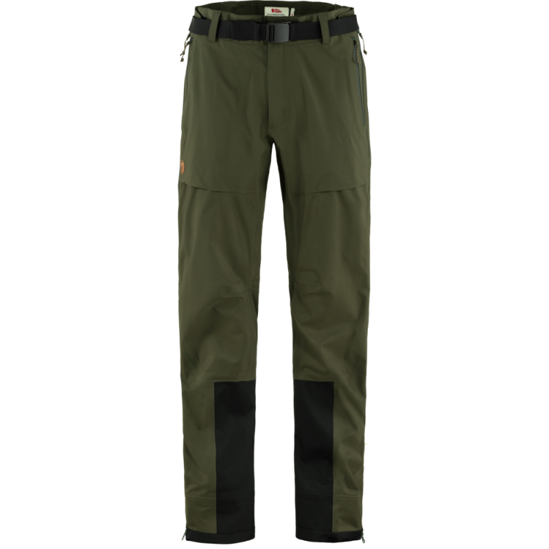 Trojvrstvové škrupinové nohavice sú odolné voči vetru a vode a sú vhodné na celoročné používanie v premenlivých poveternostných podmienkach. Sú vyrobené zo strečovej tkaniny Eco-Shell pre vysokú odolnosť a čo najnižší vplyv na životné prostredie. Materiál je odolný, kopíruje pohyby tela a odvádza vlhkosť, ktorá sa hromadí pri vašej aktivite. Nohavice sú skvelou voľbou na turistiku a zdolávanie vrcholov v náročnom teréne - minimalistický dizajn uľahčuje pohyb vpred a zároveň poskytuje úplnú ochranu pred nepriaznivými vplyvmi. Strih je starostlivo premyslený a anatomicky tvarované kolená a sedacie partie umožňujú maximálnu voľnosť pohybu. Zároveň je strih prispôsobený tak, aby sa nohavice dali nosiť napríklad cez trekingové nohavice z materiálu G-1000. Dlhé obojsmerné nepremokavé zipsy na bokoch odvádzajú nadmerné teplo a uľahčujú obliekanie a vyzliekanie. Pás má na boku nastavenie na suchý zips a opasok s ľahko použiteľnou plochou prackou, ktorý sa dobre hodí pod horolezeckú výstroj alebo bedrový pás batohu. Vďaka dvom vreckám na zips budete mať potrebné veci vždy poruke. Výstuž z Cordury na koncoch nohavíc a na vnútornej strane lýtok chráni pred opotrebovaním od topánok a mačiek. V spodnej časti je gombík a skrytá šnúrka na nastavenie šírky nohavíc. Eco-Shell je nepremokavá, priedušná a odolná hardshellová tkanina, ktorá je ošetrená impregnáciou bez obsahu fluorokarbónu. Materiál Eco-Shell je vyrobený z recyklovateľného polyesteru a všetky emisie počas výroby a prepravy sú kompenzované s ohľadom na životné prostredie.