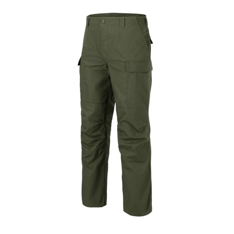 Modernizovaná verzia klasických bojových nohavíc BDU od obľúbenej značky HELIKON-TEX. Nohavice majú klasický voľný strih so zapínaním na gombíky a sú zosilnené v oblasti sedadla a kolien. Nohavice sa dajú v páse stiahnuť textilným opaskom a do pútok na opasok sa zmestia opasky až do šírky 50 mm.